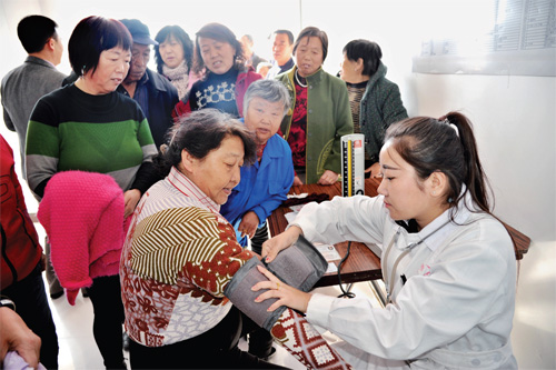 3月7日上午,代縣團(tuán)縣委在上館鎮(zhèn)橙草溝村舉行“傳承雷鋒精神,投身脫貧攻堅”志愿服務(wù)活動啟動儀式,旨在動員全縣各級團(tuán)組織和廣大團(tuán)員青年開展為期一個月的以“傳承雷鋒精神,投身脫貧攻堅”為主題的“送溫暖、獻(xiàn)愛心”、“送金融”、“送科技”、“送文明健康”系列學(xué)雷鋒志愿服務(wù)活動。啟動儀式現(xiàn)場,共收到全縣捐贈的課桌凳1900套、圖書1126冊、文具320件、衣物1063件、書包33個、體育用品14件,將分發(fā)到貧困地區(qū)農(nóng)村和學(xué)校。圖為志愿者為民群眾義診。(石俊文 攝)