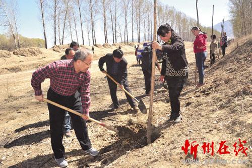 4月8日上午,代縣縣委書記田永清在主持召開了全縣換屆風氣專項督導會議之后,立刻趕赴新高鄉(xiāng)河頭村村西的中解河畔,投入到了全體村民義務植樹的活動中去,既揮鍬挖坑栽樹,又提水澆灌,還不時用鍬把將所栽樹株蹾實,確保樹株成活。
