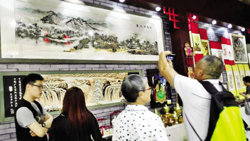 第十二屆中國(guó)(深圳)國(guó)際文化產(chǎn)業(yè)博覽交易會(huì)5月12日在深圳會(huì)展中心開幕。我市定襄縣晟龍木雕廠木雕、河邊雅藝軒澄泥仿古硯和繁峙縣晉繡坊刺繡作品參展,引起參觀者濃厚興趣。(本報(bào)記者 陳寶 攝)