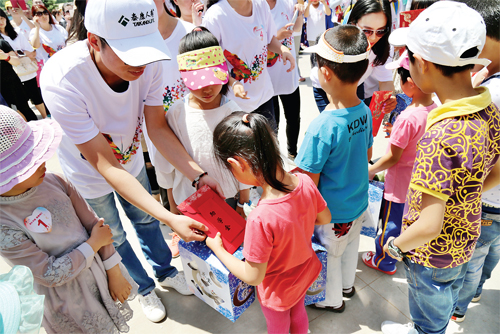 5 月30 日上午,共青團(tuán)五臺縣委舉辦了“獻(xiàn)禮華誕、慈善同行”公益活動。泰康人壽山西分公司帶著對老區(qū)人民的深情厚誼,向該縣豆村鎮(zhèn)新莊小學(xué)捐贈助學(xué)金2 萬元、課桌椅150 套、書本文具1506 件、衣物601 件和健身設(shè)施1 套。圖為貧困學(xué)生在領(lǐng)取助學(xué)金。(王鐵虎 攝)