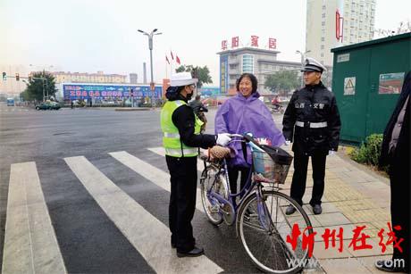 圖三:10 月15 日,交警在長征街與建設(shè)路十字路口教育違規(guī)行人