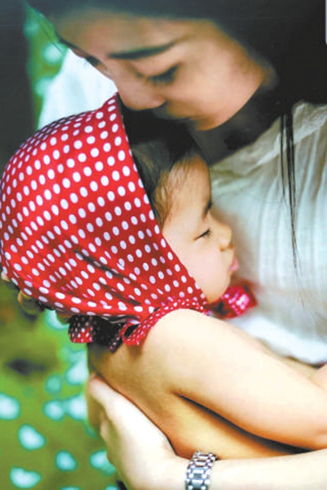 公園里,媽媽在陽光下親吻睡夢中的小寶寶。成志攝