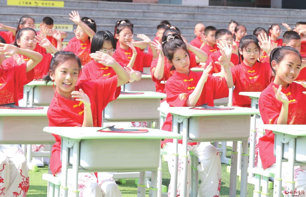 5月28日,市實驗小學(xué)五年級學(xué)生正在排練課桌舞《少年正當(dāng)時》?!傲弧睂⒅?,我市各幼兒園、小學(xué)校紛紛組織開展各種活動,迎接國際兒童節(jié)。 (記者 宮清華攝)
