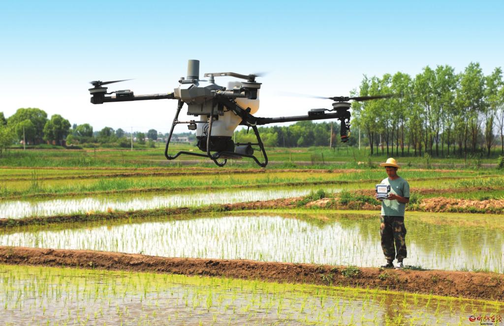 6月13日,原平市吉祥街道東營村,飛手操作植保無人機(jī)對水稻秧苗和蓮藕噴藥施肥?!叭摹睍r(shí)節(jié),原平市加大農(nóng)作物管護(hù)力度,調(diào)配植保無人機(jī)開展飛防作業(yè),組織農(nóng)技人員指導(dǎo)農(nóng)戶高效施肥、精準(zhǔn)噴藥,實(shí)現(xiàn)水稻科學(xué)管護(hù),為糧食穩(wěn)產(chǎn)高產(chǎn)筑牢基礎(chǔ)。(褚震攝)