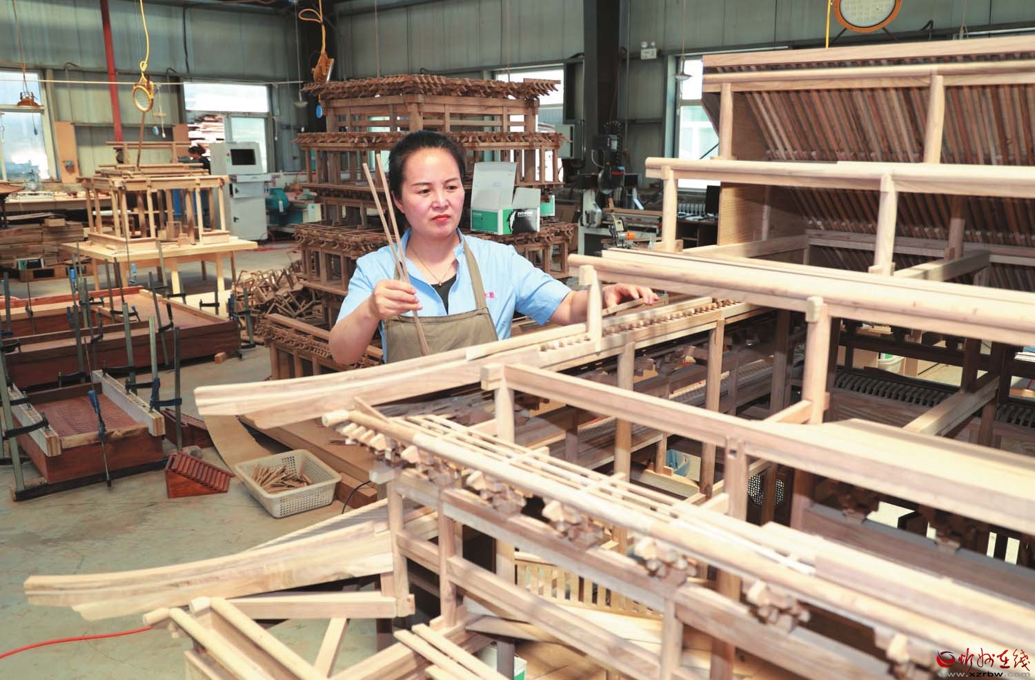 7月21日,在五臺(tái)現(xiàn)代農(nóng)業(yè)產(chǎn)業(yè)園區(qū)森雅軒古典家俱有限公司的加工車間,工人正在制作工藝品。森雅軒采用傳統(tǒng)工藝制作,以古典家具、全屋定制、工藝品、老榆木系列產(chǎn)品四大生產(chǎn)板塊為主。 (記者 張存良攝)