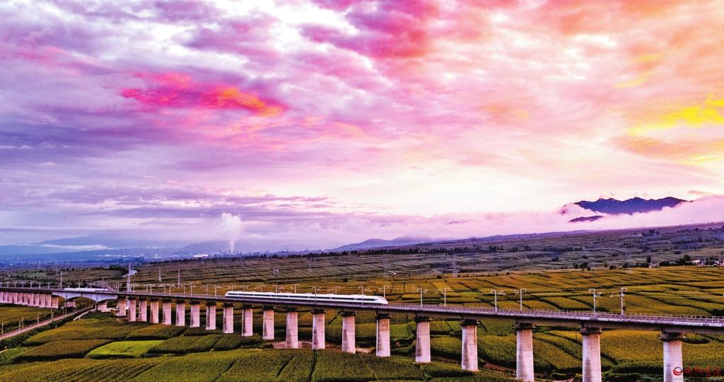 鐵路部門(mén)充分發(fā)揮高鐵運(yùn)輸優(yōu)勢(shì),針對(duì)客流需求,采取動(dòng)車(chē)組重聯(lián)、增開(kāi)周末高峰線列車(chē)等方式,持續(xù)完善運(yùn)輸服務(wù)舉措,全面提升旅客出行的便捷性與舒適度。圖為夕陽(yáng)下駛向雁門(mén)關(guān)站的動(dòng)車(chē)組列車(chē)。(王晉東攝)