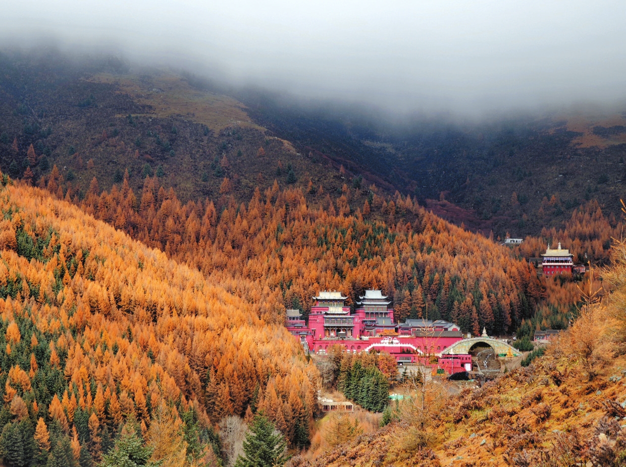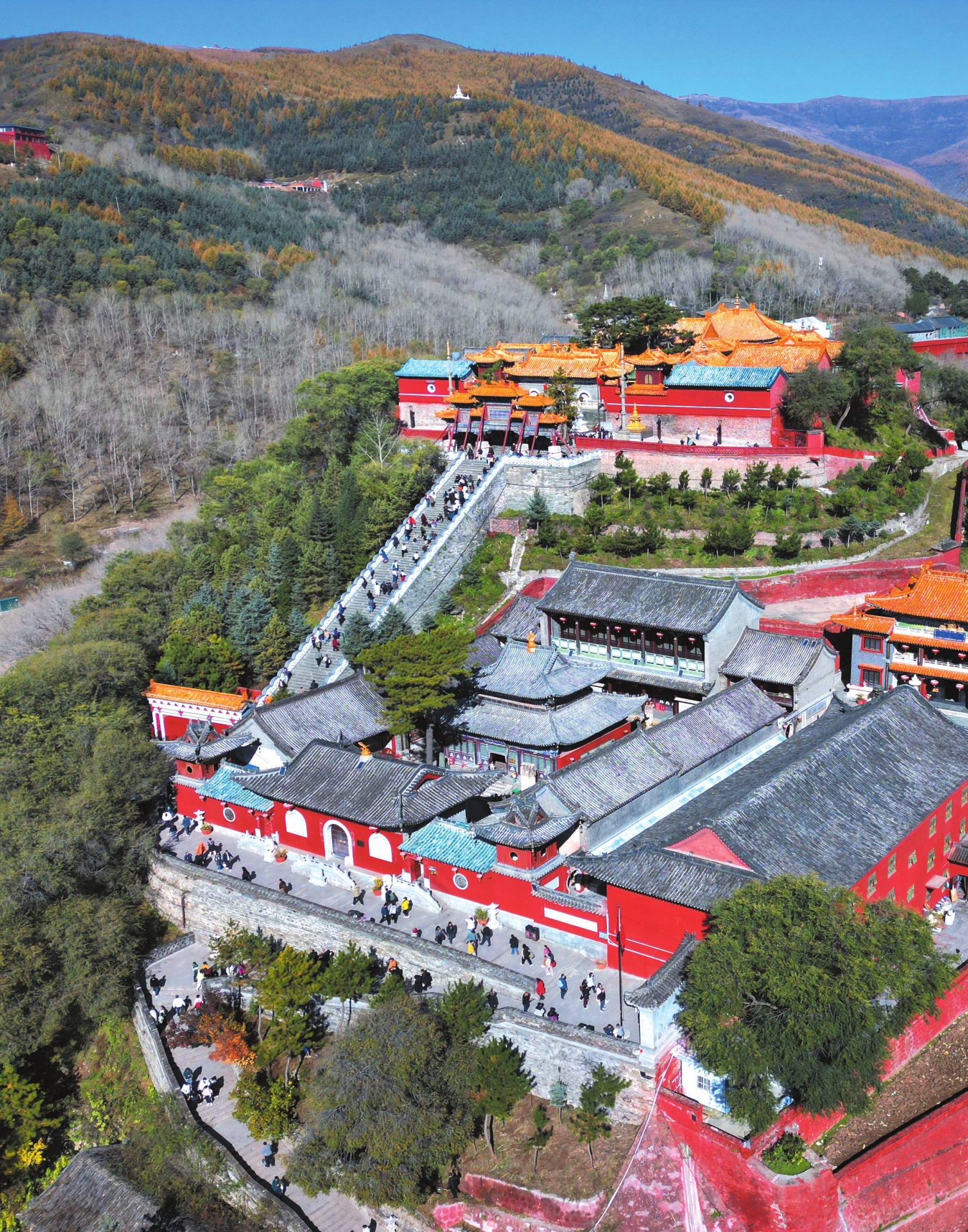 秋季已近尾聲,五臺(tái)山的秋色卻進(jìn)入最絢爛的篇章。漫山松柏與闊葉林褪去翠綠,換上金色、赤紅與橙黃的華服,與千年古剎的紅墻黛瓦相映成景,吸引海內(nèi)外游客共赴這場(chǎng)秋日禪意之約。