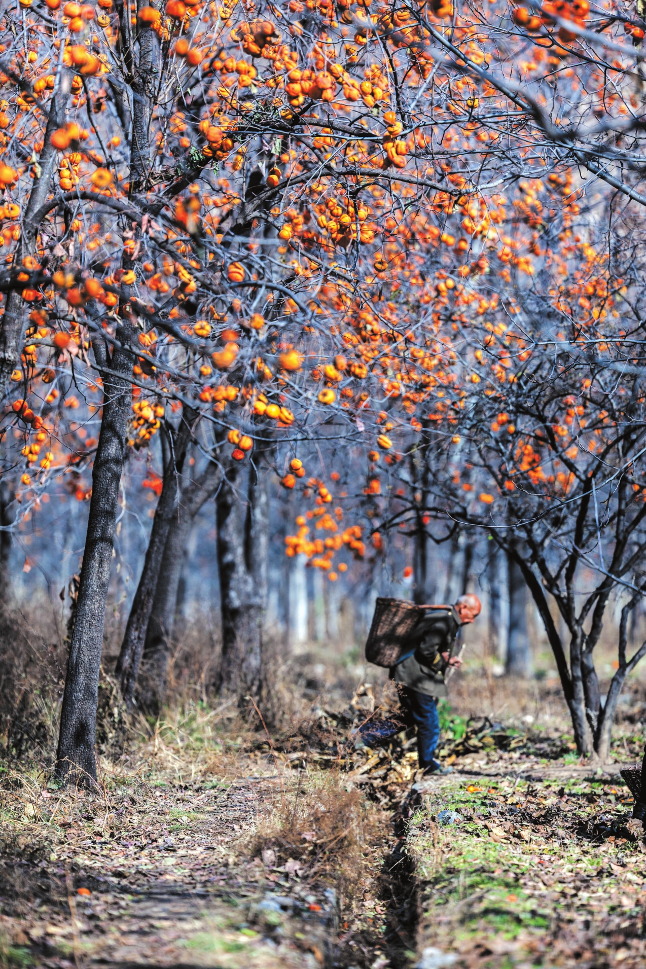 地頭那畔,景象便不同了。一對年輕的夫婦,正手腳利落地采摘、分揀柿子。竹籃里,橙紅的果實(shí)漸漸堆成小山。他們時(shí)而低語,聲音輕得像風(fēng)拂過枝梢,說的或許是今年柿子的成色,盤算著能賣個(gè)好價(jià)錢;或許是在憧憬,等這筆錢到手,該給娃添置些什么。他們額上有細(xì)密的汗珠,眉宇間有勞作后的倦色,但那份倦色底下,卻藏不住一股子蓬勃向上的勁兒,一種屬于明天的、清亮亮的盼頭。