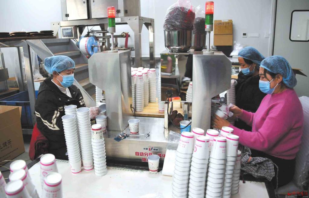 12月6日,寧武縣管涔仙草特色農(nóng)業(yè)科技開發(fā)有限公司的工人正在包裝毛健茶。該企業(yè)在傳統(tǒng)手工制茶工藝的基礎(chǔ)上,創(chuàng)新融入現(xiàn)代工藝技術(shù),大力打造品牌產(chǎn)品,既提升了產(chǎn)品附加值,也帶動了當(dāng)?shù)剞r(nóng)戶增收和縣域產(chǎn)業(yè)振興。(本報記者劉紀(jì)森攝)
