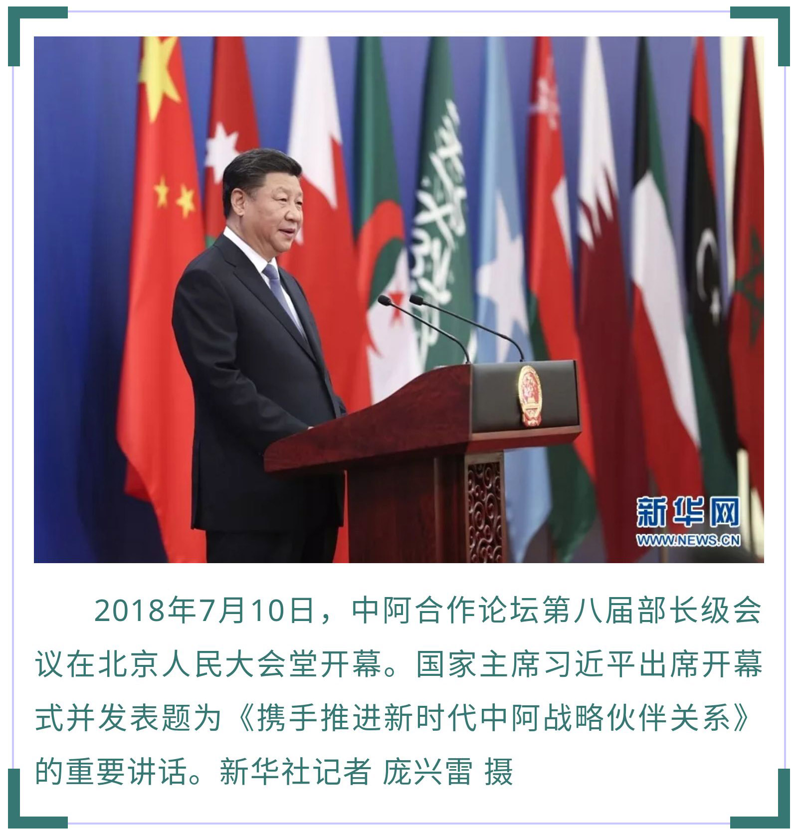 “2018年,我在中阿合作論壇第八屆部長級會議開幕式上宣布中阿雙方建立戰(zhàn)略伙伴關(guān)系,倡議打造中阿命運(yùn)共同體,共同推動構(gòu)建人類命運(yùn)共同體,得到阿拉伯國家熱情響應(yīng)?!痹谫R信中,習(xí)近平深情回憶。