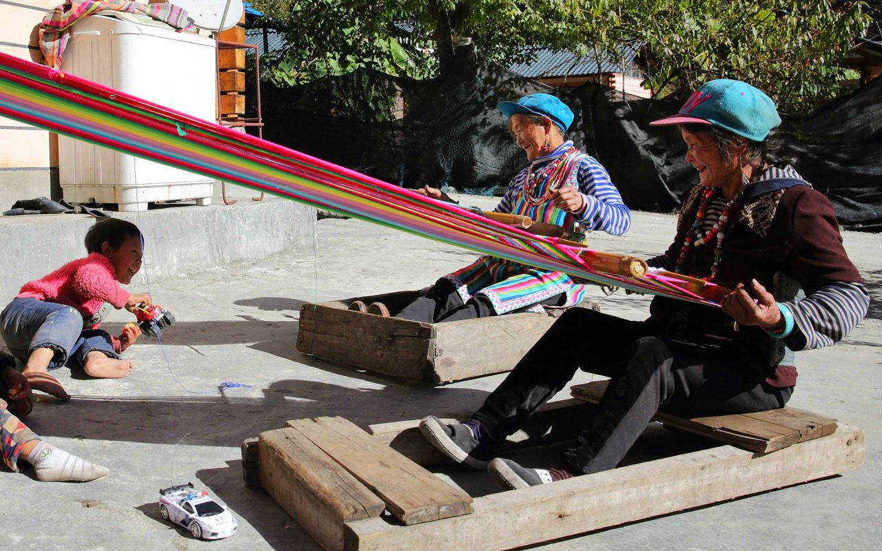 △獨龍族紋面女在織當?shù)靥赜械莫汖執(zhí)骸?/span>