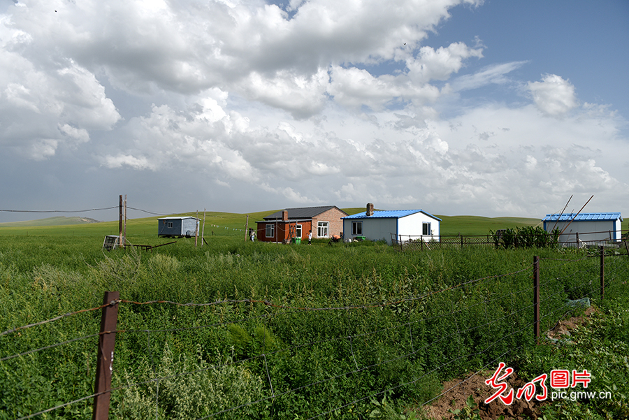 在其日麥拉圖家附近還有三所小房子,這是其日麥拉圖給自己的三個(gè)兒子準(zhǔn)備的?!皟鹤觽兌荚谄炖镔I了新房子、新車子,有時(shí)候也會(huì)帶著兒媳婦、孫子來(lái)牧場(chǎng),和我們一起養(yǎng)牛、養(yǎng)馬?!眻D為2020年8月2日,其日麥拉圖家。(潘迪攝/光明圖片)