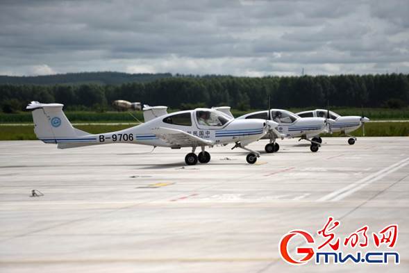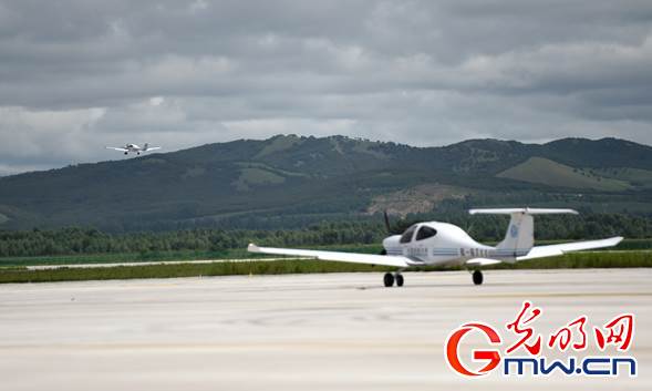 內(nèi)蒙古扎蘭屯成吉思汗機(jī)場(chǎng),飛行學(xué)員們正在駕駛訓(xùn)練機(jī)進(jìn)行飛行訓(xùn)練。光明網(wǎng)記者 潘迪攝