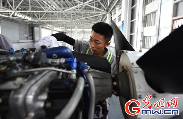 中國(guó)民航大學(xué)內(nèi)蒙古飛行學(xué)院的學(xué)員正在進(jìn)行通用飛行器維修訓(xùn)練。光明網(wǎng)記者 潘迪攝