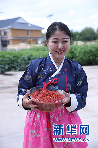 “明花辣白菜”制作者李貞淑是遼寧開源人,2011年嫁到阿榮旗新發(fā)鄉(xiāng)東光村。她的婆婆鄭明花經(jīng)營(yíng)一家營(yíng)業(yè)面積1400平方米,員工20人的朝鮮族特色美食餐廳,在致富同時(shí)帶動(dòng)了當(dāng)?shù)芈糜螛I(yè)發(fā)展。在婆婆鄭明花指導(dǎo)下,李貞淑學(xué)習(xí)了朝鮮族美食傳統(tǒng)制作工藝,成為阿榮旗非物質(zhì)文化遺產(chǎn)傳承人。