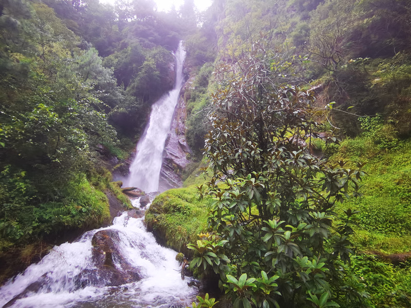 山間時(shí)有瀑布濺起水花,淌成潺潺的清澈溪水。你甚至能看到野生猴子出沒(méi)于公路兩旁,牦牛走在路邊,悠悠然地目送著一輛輛汽車離開(kāi)。