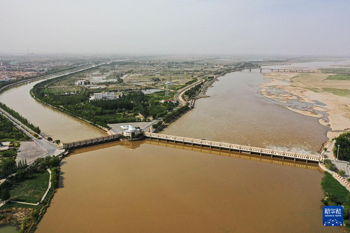 這是5月28日拍攝的位于巴彥淖爾市磴口縣的三盛公水利樞紐(無(wú)人機(jī)照片)。(新華社記者 李志鵬 攝)