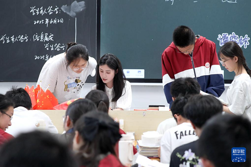6月4日,河南省焦作市溫縣啟明實(shí)驗(yàn)高中高三學(xué)生在課堂上復(fù)習(xí)備考。(新華社發(fā) 徐宏星 攝)
