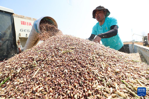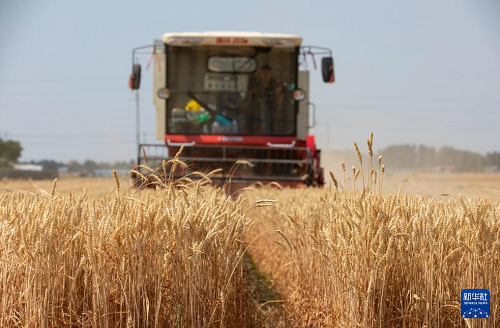 6月10日,河北石家莊新樂市馬頭鋪鎮(zhèn)西名村農(nóng)民在收獲小麥。(新華社發(fā) 賈敏杰 攝)