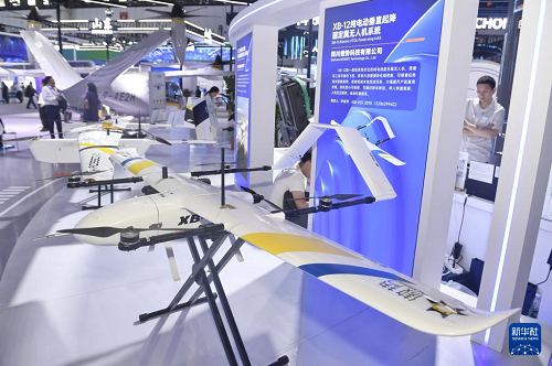 四川館展出的無(wú)人機(jī)(6月11日攝)。(新華社記者 劉坤 攝)