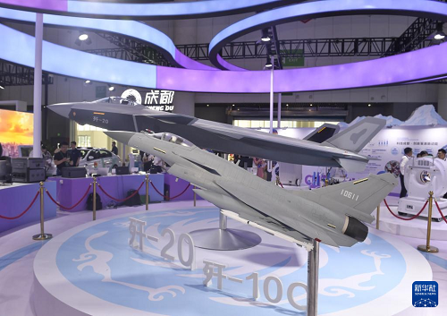 成都館展出的殲20和殲10C模型(6月11日攝)。(新華社記者 劉坤 攝)