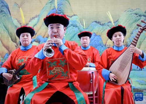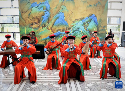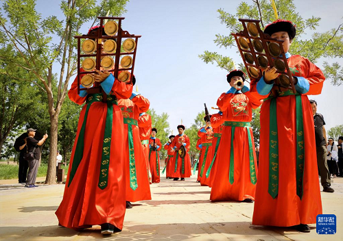 6月17日,天壇神樂署雅樂團(tuán)在北京路縣故城遺址公園進(jìn)行展演。(新華社發(fā) 劉濤 攝)