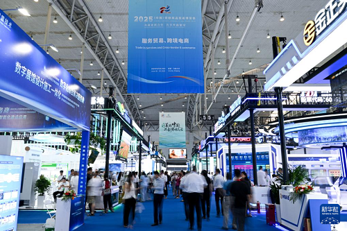 6月26日拍攝的2025(中國)亞歐商品貿(mào)易博覽會服務(wù)貿(mào)易、跨境電商展區(qū)。(新華社記者 辛悅衛(wèi) 攝)