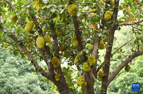 這是6月29日在南寧市金浦路拍攝的結果的木菠蘿樹。(新華社記者 陸波岸 攝)