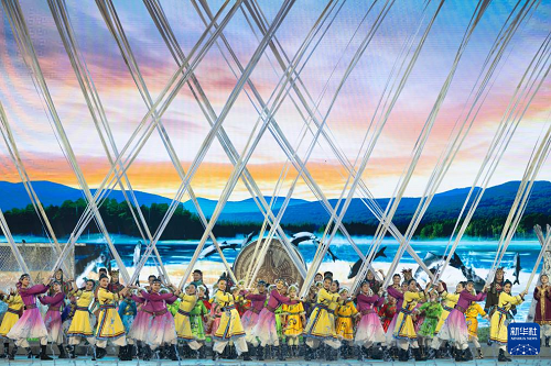 7月2日,演員在2025黑龍江省特色文化旅游推介會現(xiàn)場表演。(新華社記者 張濤 攝)
