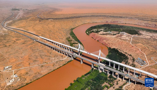 7月3日拍攝的黑山峽黃河特大橋(無人機(jī)照片)。(新華社記者 馮開華 攝)