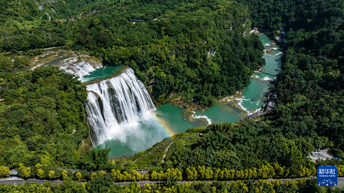 近日,位于貴州省安順市的黃果樹瀑布景區(qū)正處于夏日最佳觀賞期。黃果樹大瀑布水勢磅礴,在陽光的照射下,瀑布前架起一道彩虹,美麗的景象吸引各地游客前來觀賞游玩。