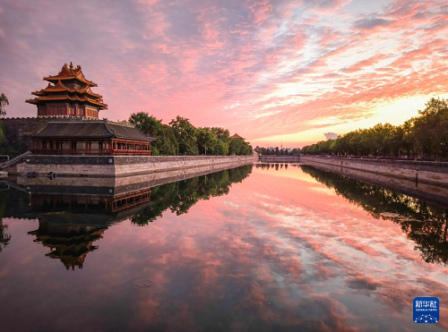 晚霞中的北京故宮東北角樓(手機照片,7月20日攝)。(新華社記者 陳曄華 攝)