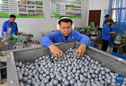 7月23日,在廣西南寧市國家生防天敵擴(kuò)繁基地,工作人員生產(chǎn)螟黃赤眼蜂釋放球。(新華社記者 陸波岸 攝)