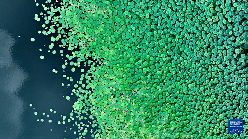 7月23日拍攝的雄安新區(qū)連片的荷花(無人機照片)。(新華社記者 落飛麟 攝)