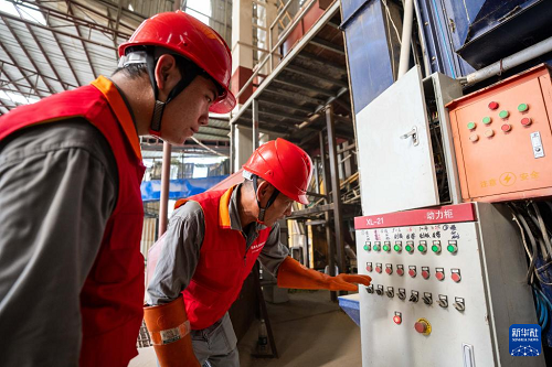 7月24日,在常德市鼎城區(qū)雙橋坪鎮(zhèn)一個水稻烘干工廠,國網(wǎng)常德供電公司電力工人在檢查烘干設(shè)備電力供應(yīng)情況。(新華社記者 陳思汗 攝)
