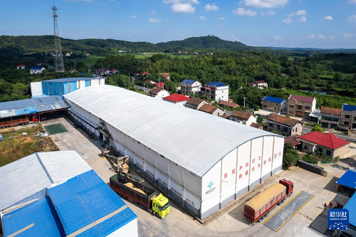 這是7月24日在常德市鼎城區(qū)雙橋坪鎮(zhèn)拍攝的一個水稻烘干工廠(無人機(jī)照片)。(新華社記者 周勉 攝)