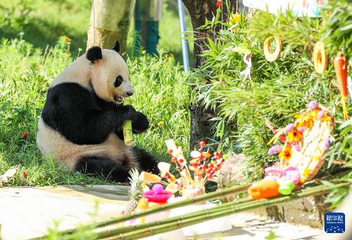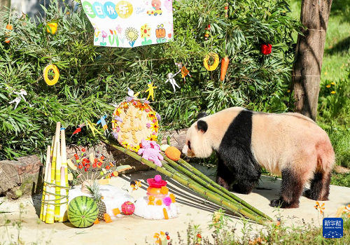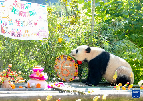 7月27日,大熊貓“林溪”“一家”在四川省廣安市華鎣山熊貓苑,分別迎來4歲和6歲生日,飼養(yǎng)員為它倆舉行了一場別開生面的生日會。
