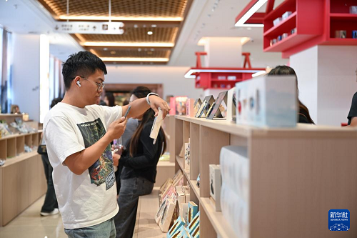 7月30日,游客在內(nèi)蒙古呼和浩特市內(nèi)蒙古博物院新館選購(gòu)文創(chuàng)產(chǎn)品。(新華社記者 貝赫 攝)