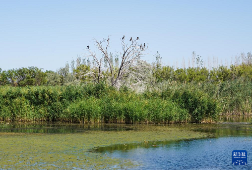 8月10日,鸕鶿在瑪納斯國(guó)家濕地公園樹枝上棲息。(新華社記者 周佳誼 攝)