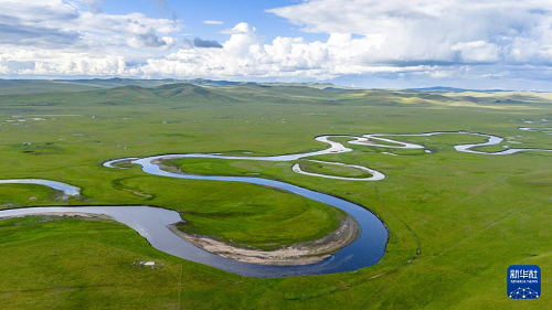 這是8月19日在內(nèi)蒙古呼倫貝爾市陳巴爾虎旗拍攝的莫爾格勒河風(fēng)光(無人機(jī)照片)。(新華社記者 馬金瑞 攝)
