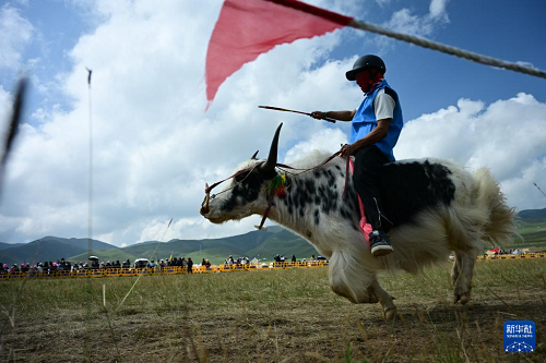 8月19日,騎手在賽牦牛比賽中。(新華社記者 齊芷玥 攝)