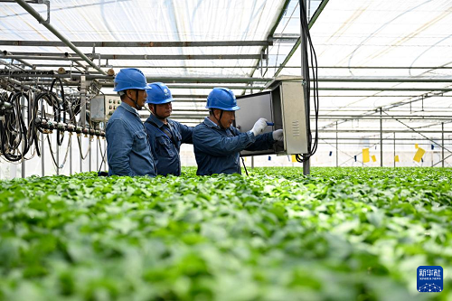 8月26日,在和縣綠緣溫室科技有限公司,國網馬鞍山供電公司的工作人員在檢修電力設施保障企業(yè)用電需求。(新華社記者 黃博涵 攝)
