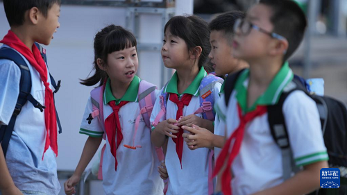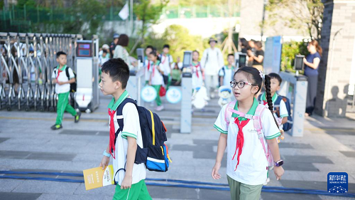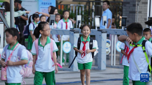 9月1日,貴陽市實驗小學(xué)未來方舟分校的學(xué)生走進(jìn)校園。(新華社記者 陶亮 攝)