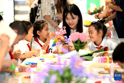 9月9日,在河北省石家莊市柏林莊學(xué)校開展的“黏土做花寄師恩”主題活動(dòng)中,孩子們用粘土制作花束,為老師送上節(jié)日的祝福。(新華社發(fā) 陳其保 攝)