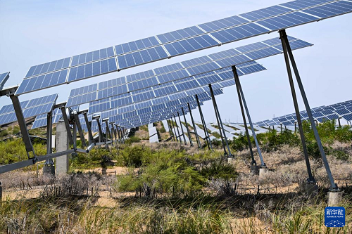 內(nèi)蒙古鄂爾多斯市達(dá)拉特旗境內(nèi)的庫布其沙漠里,一塊塊藍(lán)色光伏板鱗次櫛比、鋪陳排開,將沙海變成綠能涌動(dòng)的“藍(lán)?!?。近年來,達(dá)拉特旗依托光伏基地建設(shè),推廣應(yīng)用“光伏治沙”模式,實(shí)現(xiàn)光伏板上發(fā)綠電,板下治理沙漠生態(tài),既帶動(dòng)新能源產(chǎn)業(yè)發(fā)展,也促進(jìn)庫布其沙漠治理。