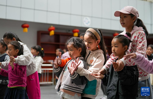9月11日,在拉薩市實驗小學(xué),孩子們在練習(xí)藏戲。(新華社記者 晉美多吉 攝)