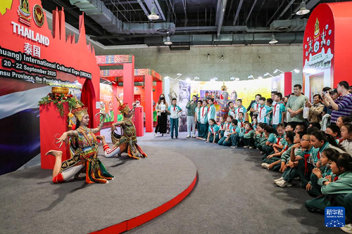 9月22日,學(xué)生在敦煌文博會(huì)上觀看演出。(新華社記者 郎兵兵 攝)