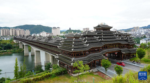 這是9月25日拍攝的三江侗族自治縣的程陽永濟(jì)橋。該橋建成于1924年,整座橋梁搭建時不用一釘一鉚,主要由木料和石料建成,橋長近80米,寬近4米,高近12米,是我國建筑藝術(shù)中的珍品。(新華社記者 張楓 攝)