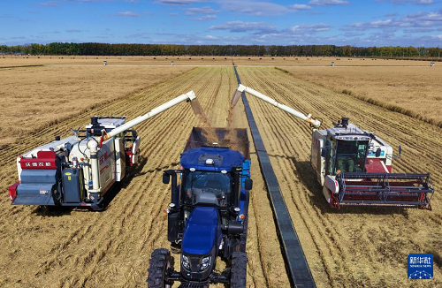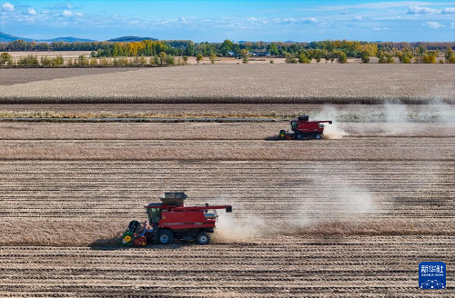 寒露時節(jié),黑龍江省各地搶抓農時忙農事,田間地頭一片繁忙景象。