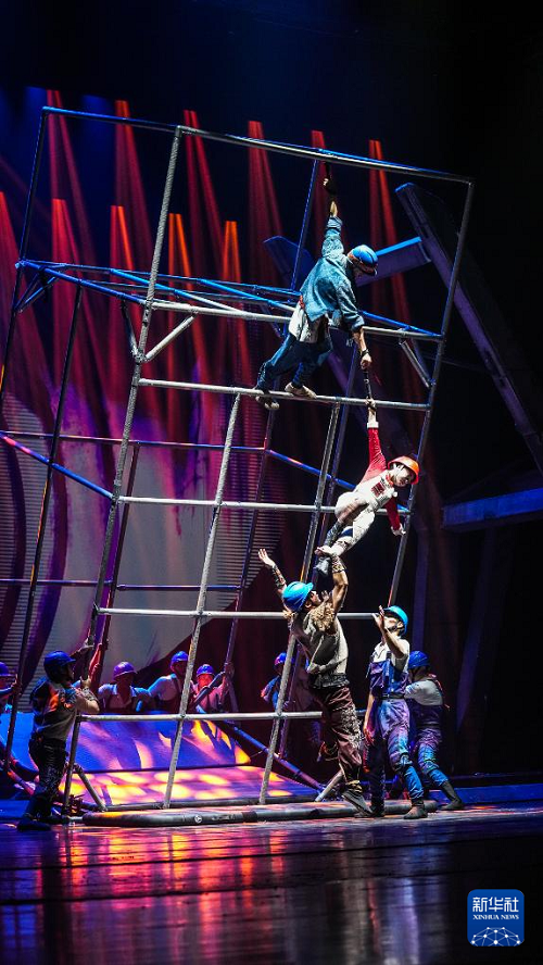 10月9日,演員在表演雜技劇《脊梁》。(新華社記者 陶亮 攝)